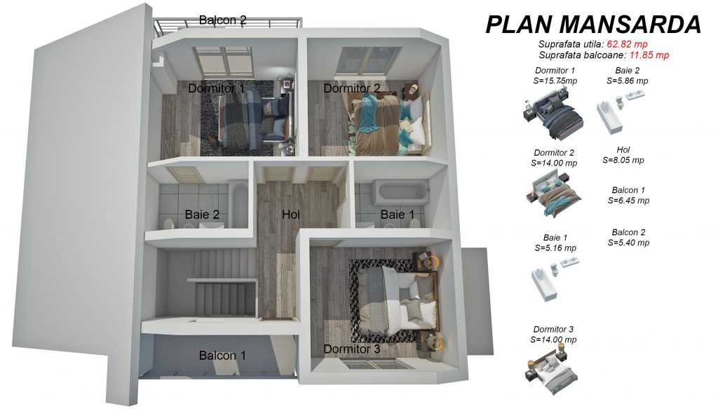 Proiectele din colectia “casa mea”, contine proiectul si toate etapele casei, asfel incat la final mai ai nevoie de obiecte sanitare si mobilier, ca se poti locui.