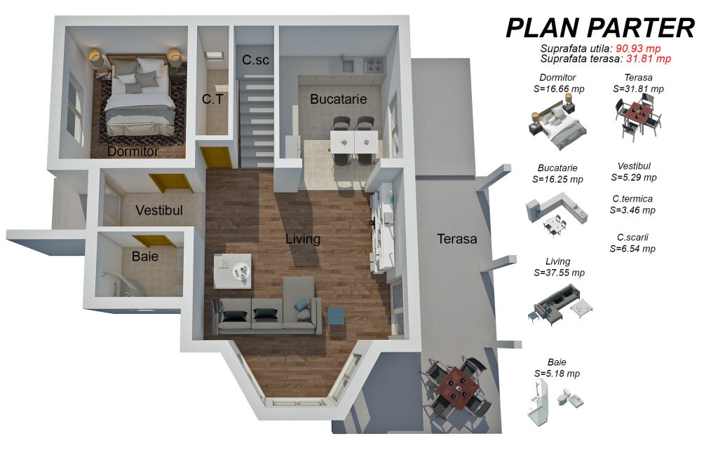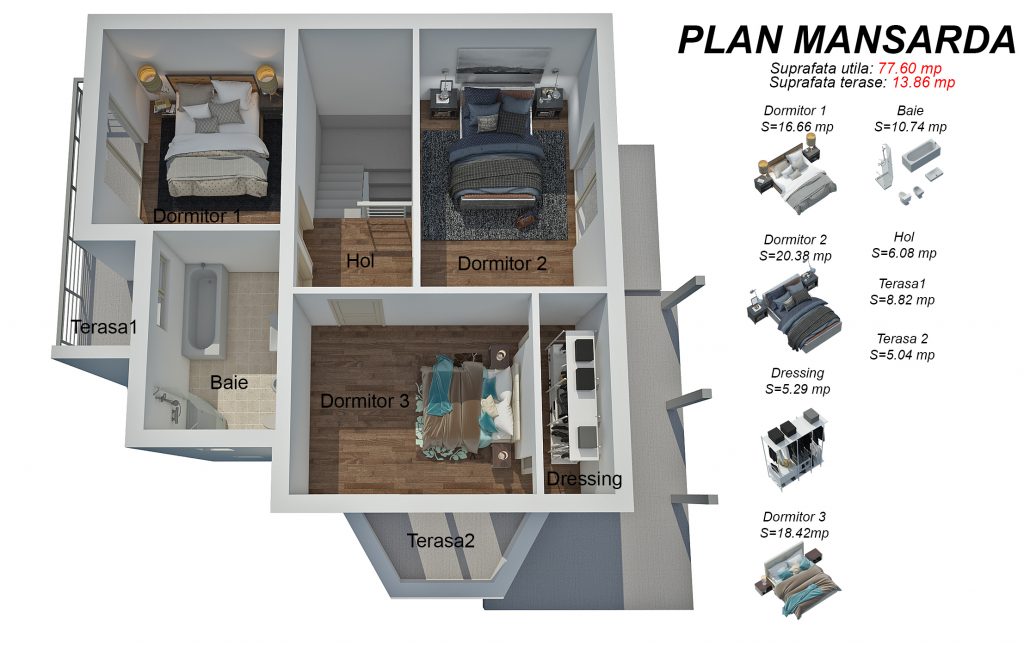 Vei mai avea nevoie de: gard, bransare la utilitati, amenajarea curtii, trotuarele, pe care te putem ajuta sa le faci dar costurile lor se adauga suplimentar la pretul casei.
