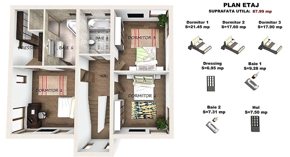 Vila Scarlett: suprafata construita 266 mp – suprafata utila 210 mp – terasa 25 mp